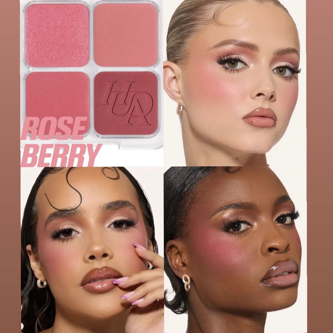 A dreamy blush palette featuring 3 ultra-pigmented matte shades and a radiant blushlighter for buildable, soft-focus, filtered colour. ○ 6.4G.